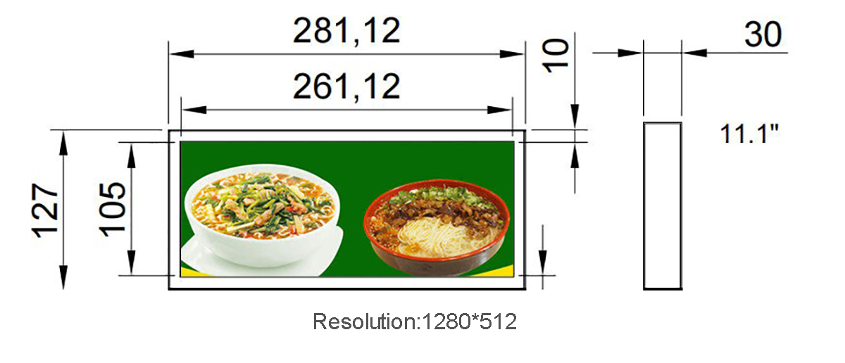11.1 inch stretched bar lcd display Material:Metal Resolution:1280*516 Display area:261.12*105mm Touch style:G+GCapacitive Touch screen