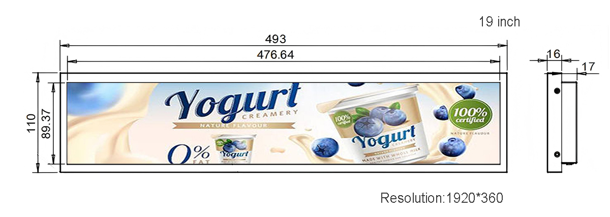 19 Inch Metal Stretched LCD Display Display area:1920*388 Resolution:476.64*89.3mm Material:Metal