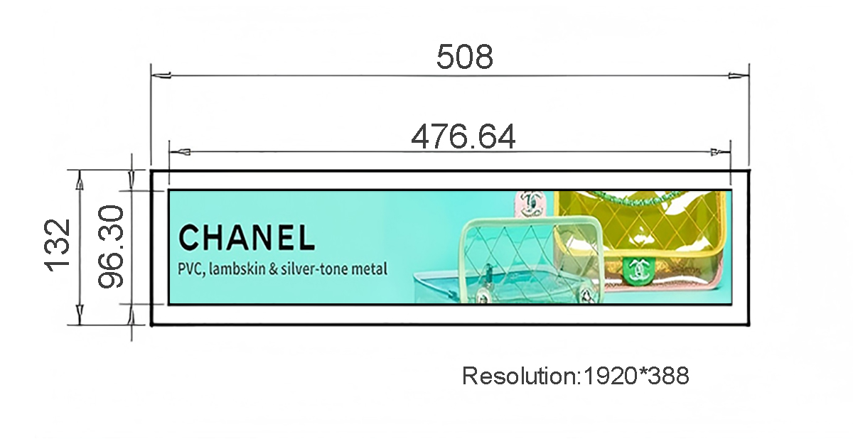 19.1 Inch Metal stretched bar lcd display Display area:476.64*96.3mm Resolution:1920*388 Material:Metal