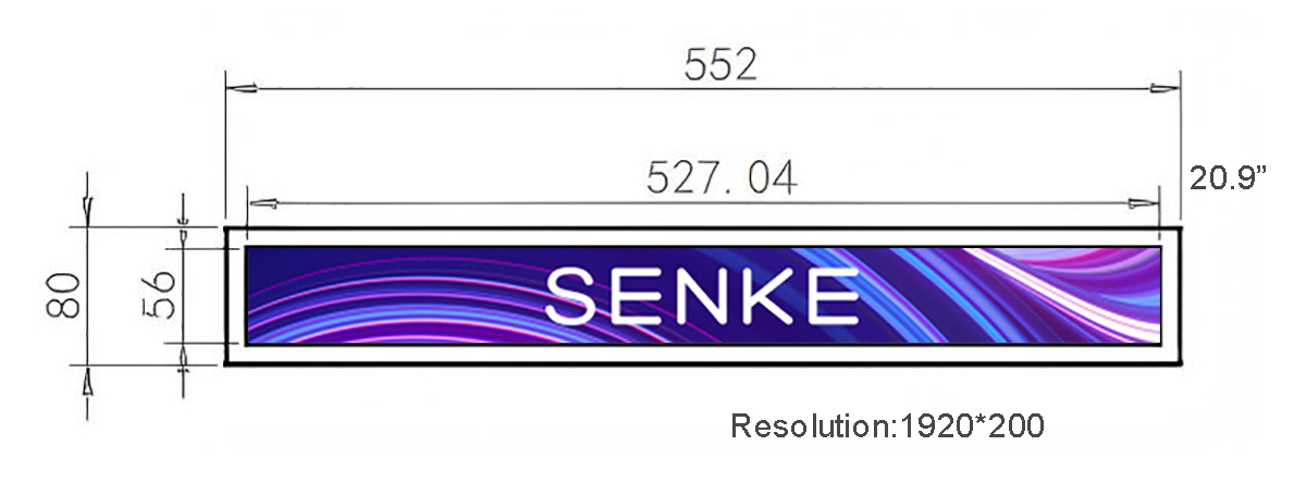 20.9 Inch Narrow Metal Stretched LCD Display Display area:527.04*56mm Resolution:1920*200 Material:Metal