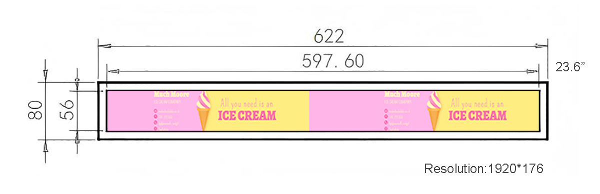 23.6 Inch Narrow Metal Stretched LCD Display Display area:597.6*56mm Resolution:1920*176 Material:Metal
