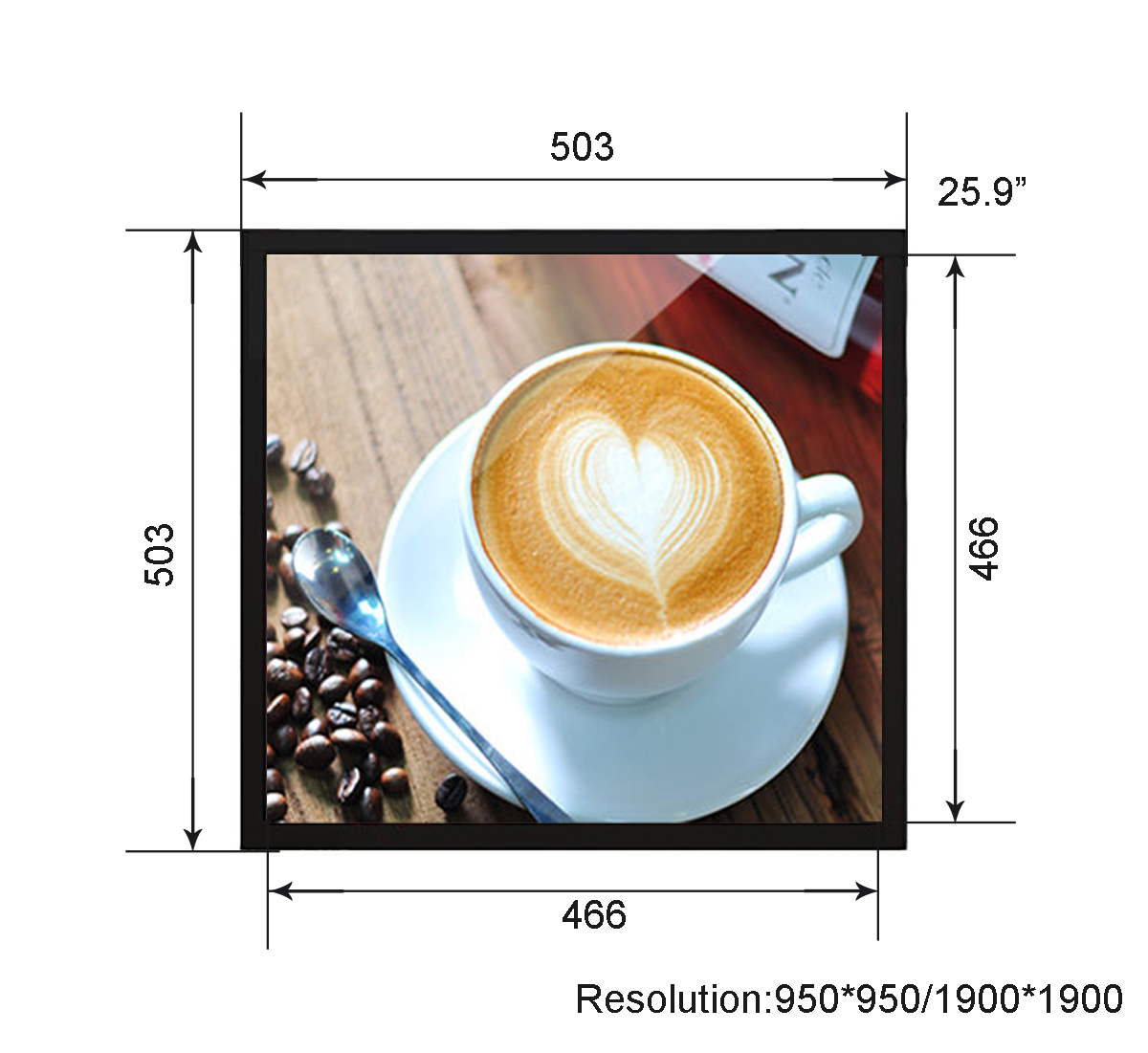 25.9 inch Metal Square LCD Display Resolution:950*950/1900*1900 Display area:466*466mm Material:Metal