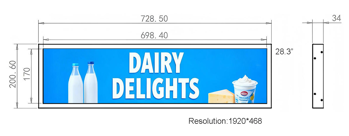 28.3 Inch Metal Stretched LCD bar Resolution:1920*468 Display area:698.4*170mm Material:Metal
