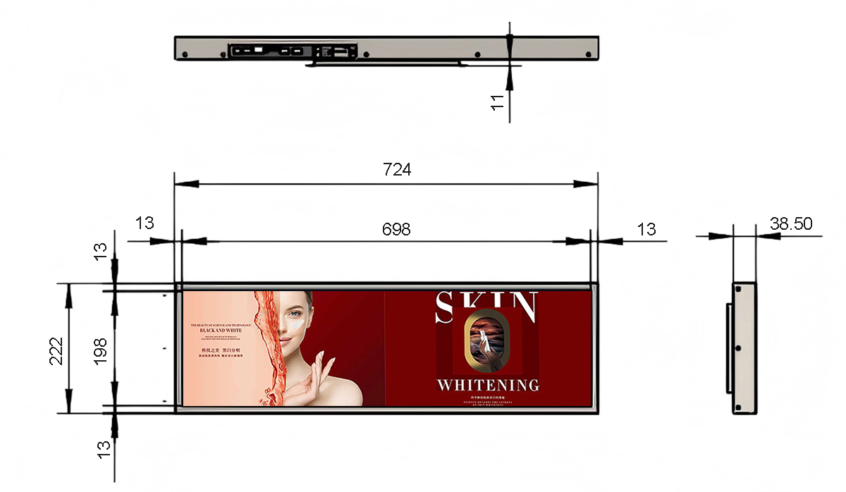 28.6 Inch Metal Stretched LCD Display Display area:698.5*196.5mm Resolution:1920*540 Material:Metal