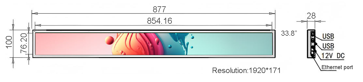 33.9 Inch Narrow Metal Stretched LCD Display Display area:854.16*76.2mm Resolution:1920*171 Material:Metal