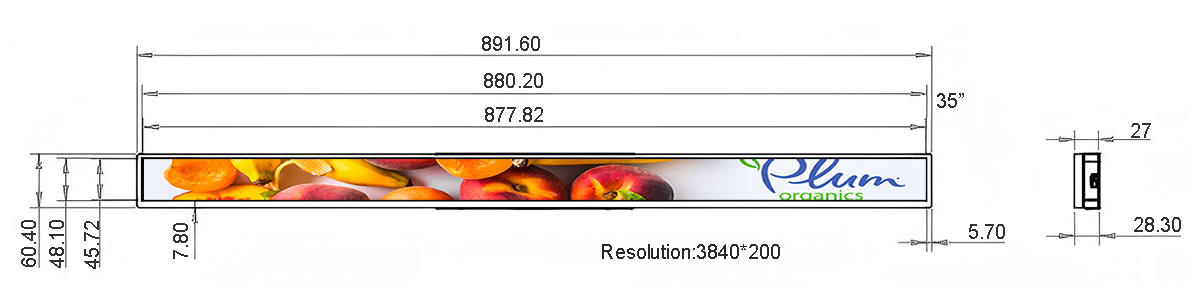 35 Inch Shelves Metal Stretched LCD Display Display area:880*48mm Resolution:3840*200 Material:Metal