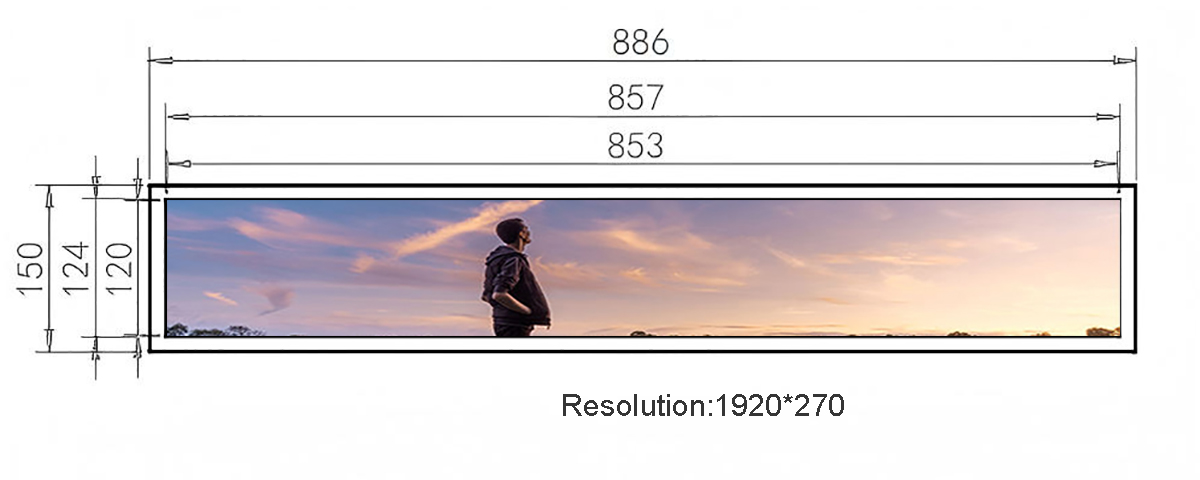 35 Inch Metal Stretched LCD Display Display area:853*120mm Resolution:1920*270 Material:Metal