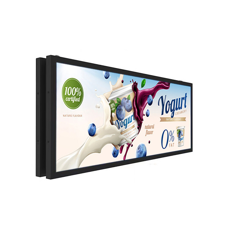 37.7 Inch Metal Double-Sided Stretched LCD Display Display area:941.18*176.47mm Resolution:1920*360/3840*720 Material:Metal