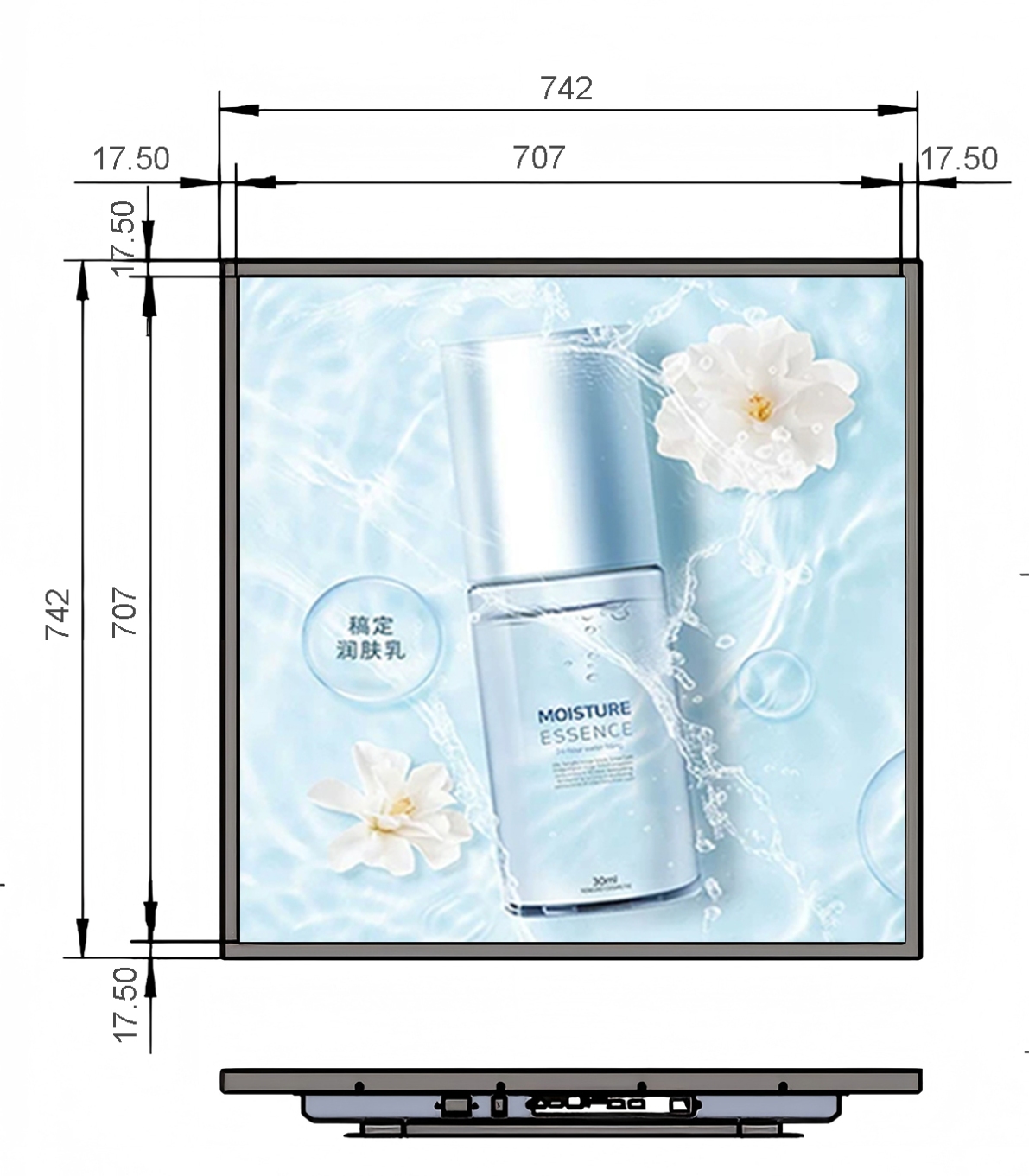 39.4 inch Hardware Square LCD Display Resolution:1900*1900 Display area:707*707mm Material:Hardware