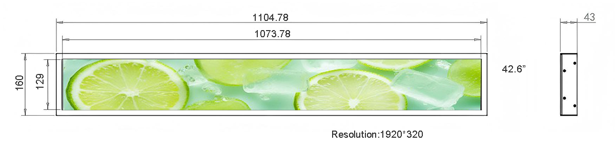 42.6 Inch Metal Stretched LCD Display Display area:1073.78*129mm Resolution:1920*540/3840*1080 Material:Metal