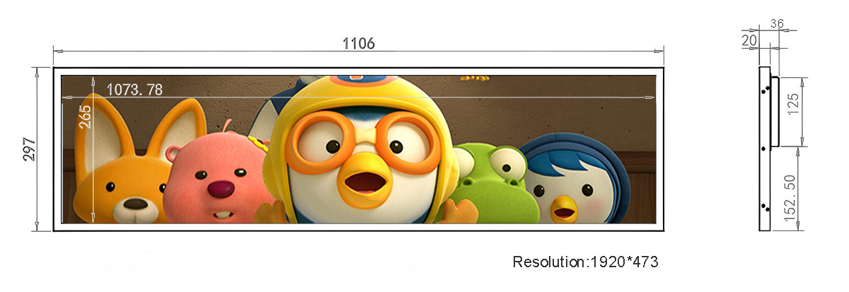 43.5 Inch Metal Stretched LCD Display Display area:1073.78*265mm Resolution:1920*473/3840*946 Material:Metal