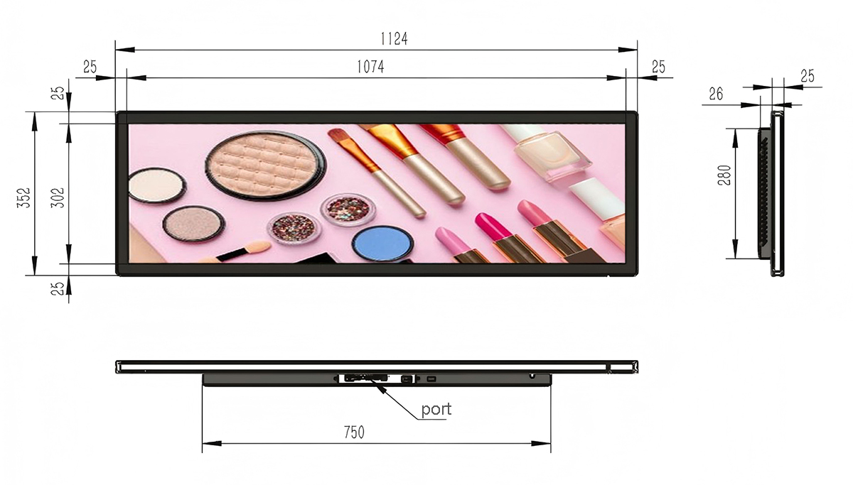43.9 Inch Aluminum Stretched LCD Display Display area:1074*302mm Resolution:1920*540/3840*1080 Material:Aluminum