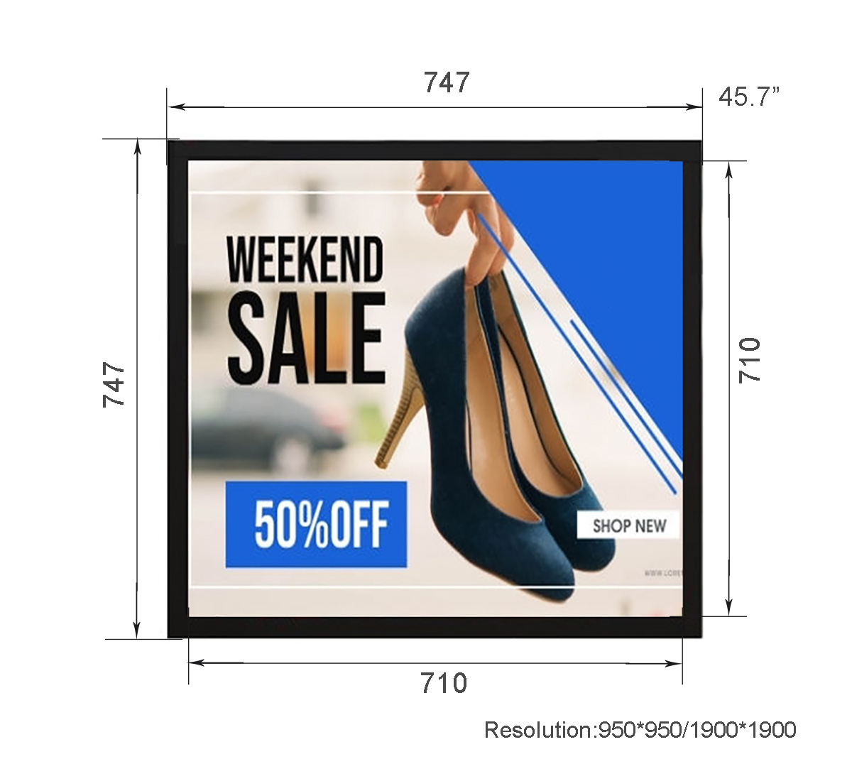45.7 inch Metal Square LCD Display Resolution:950*950/1900*1900 Display area:710*710mm Material:Metal