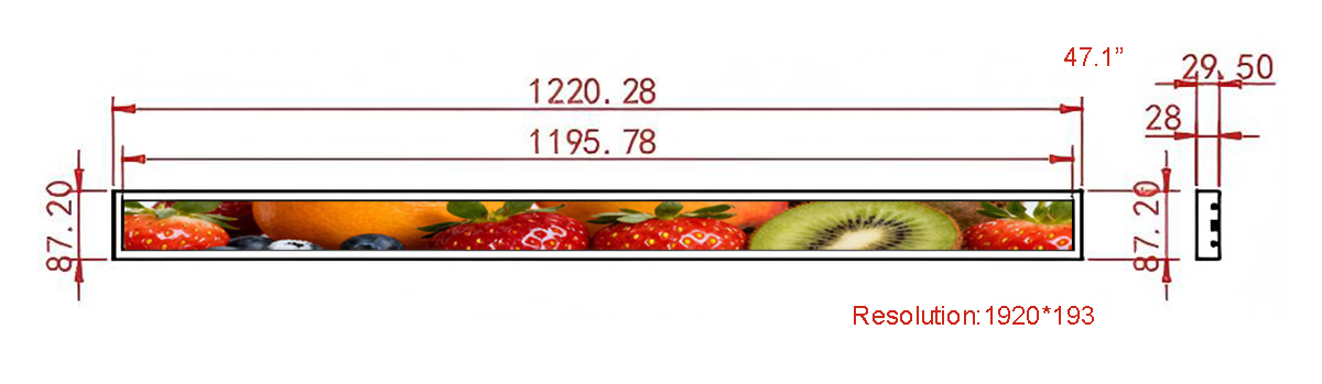 47.1 Inch Narrow Metal Stretched LCD Display Display area:1195.78*60mm Resolution:3840*193 Material:Metal