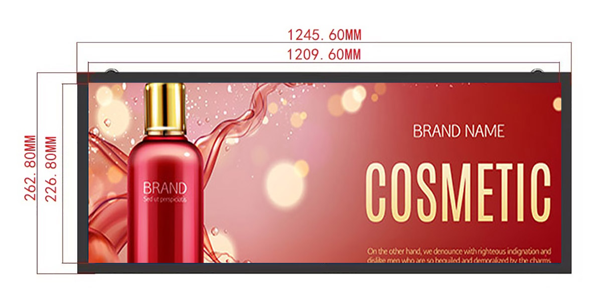 48.5 Inch Metal Double-Sided Stretched LCD Display Display area:1209.6*226.80mm Resolution:1920*360/3840*720 Material:Metal