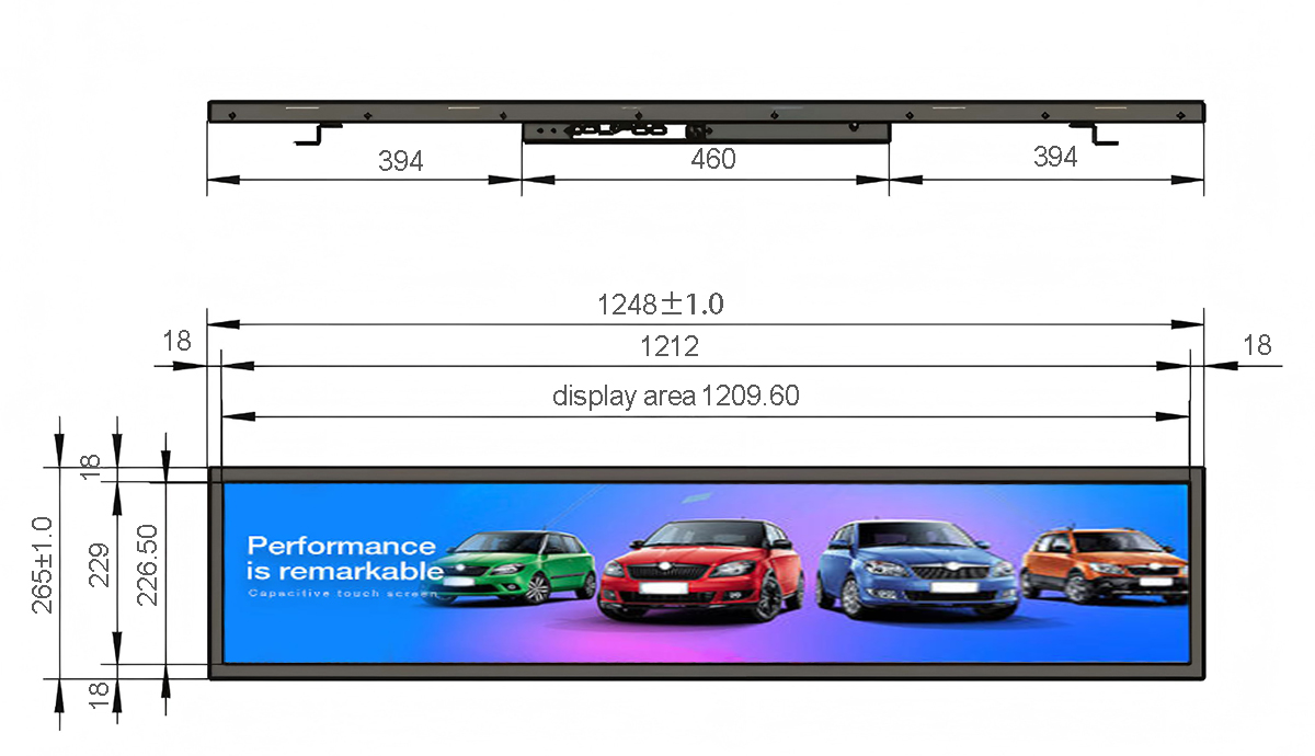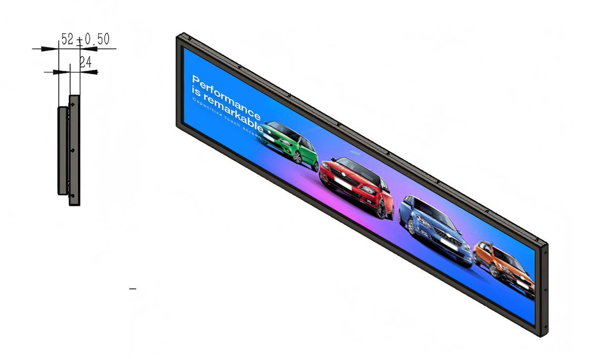 28.8 Inch Metal Stretched LCD Display Display area:1209.6*226.5mm Resolution:1920*360/3840*720 Material:Metal
