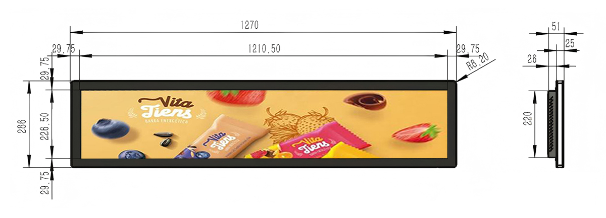 48.8 Inch Aluminum Stretched LCD Display Display area:1210.5*226.5mm Resolution:1920*360/3840*720 Material:Aluminum