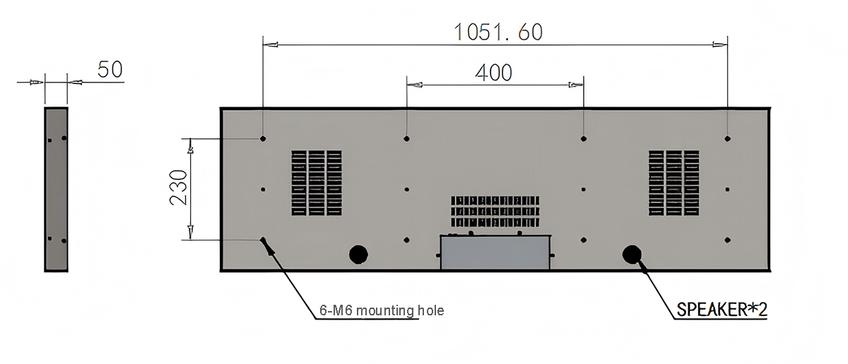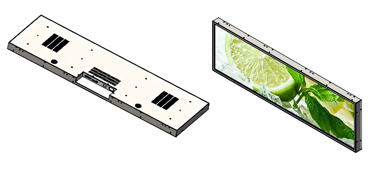 49.5 Inch Hardware Stretched LCD Display Display area:1209.6*340mm Resolution:1920*540 Material:Hardware、Tempered glass