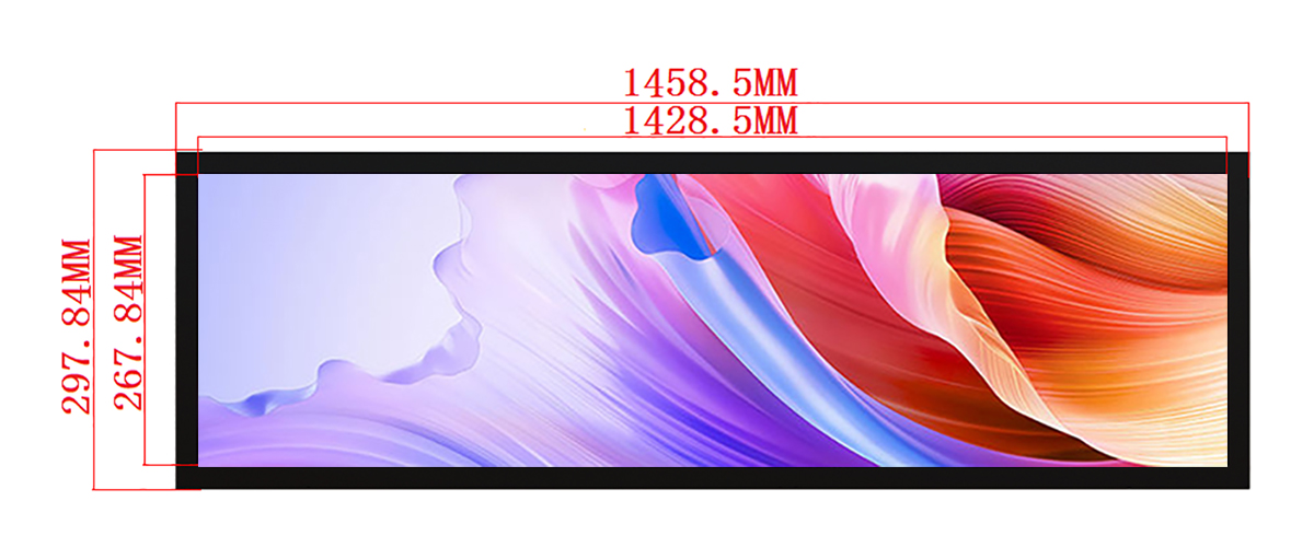 57.2 Inch Metal Stretched LCD Display Display area:1428.48*267.84mm Resolution:3840*720/1920*360 Material:Metal
