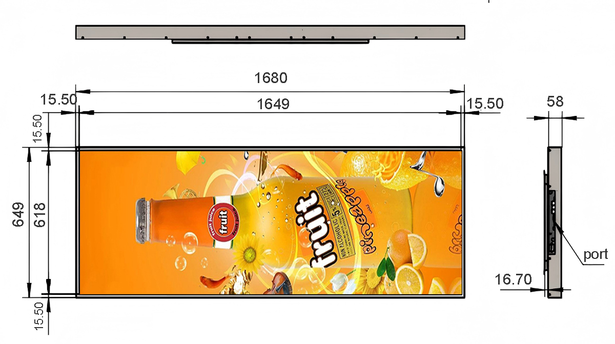 69 Inch Hardware Stretched LCD Display Display area:1649.66*618mm Resolution:3840*1440 Material:Hardware、Tempered glass