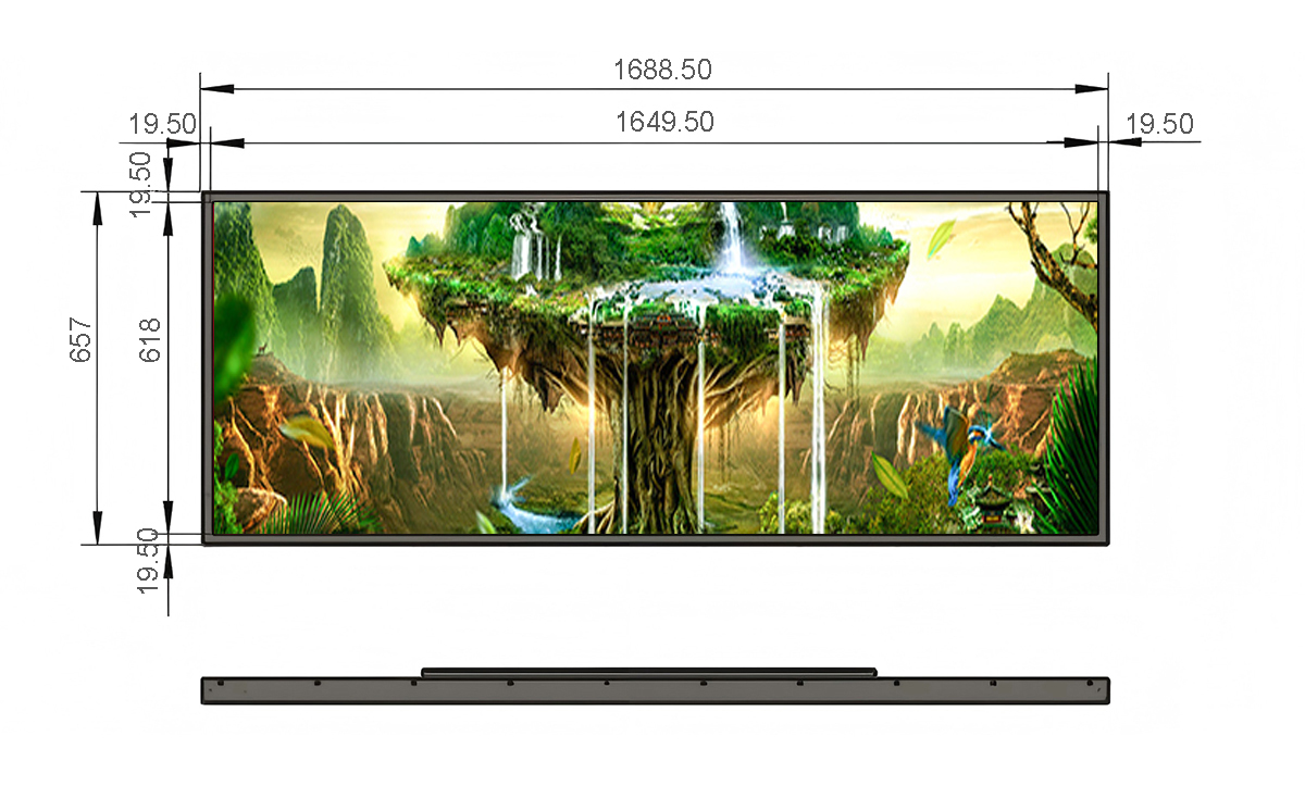 69.3 Inch Metal Stretched LCD Display Display area:1649.5*618mm Resolution:3840*1440 Material:Metal