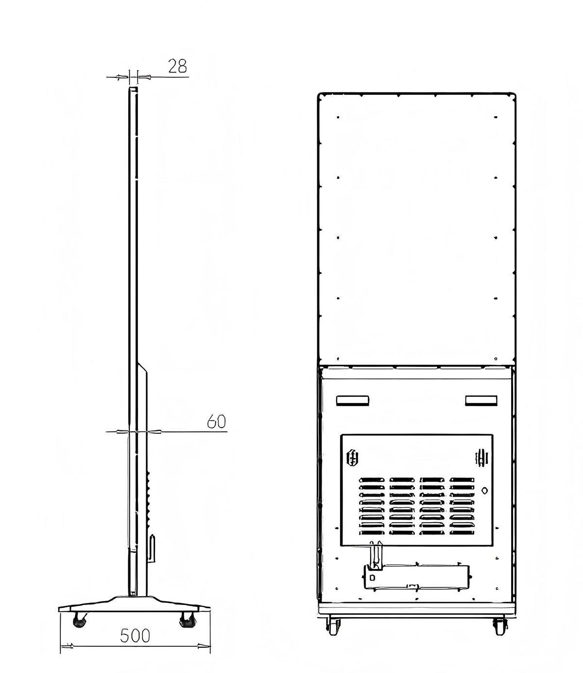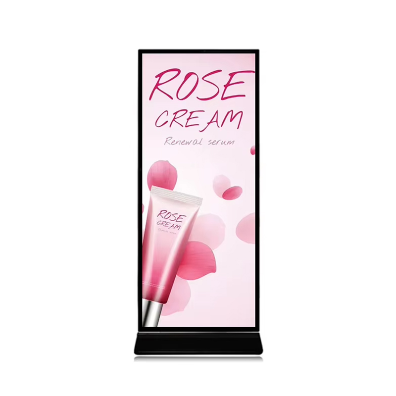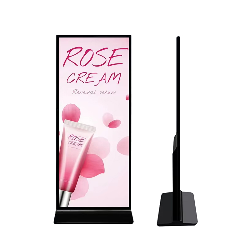 69.3 Inch Vertical Full-Screen Advertising Display Display area:1649.66*617mm Resolution:3840*1436 Material:Aluminum、Tempered glass、Caster base