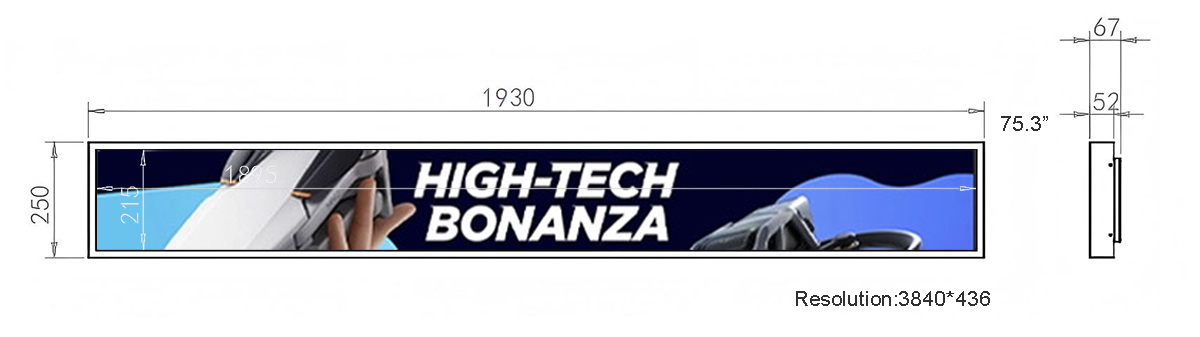 75.3 Inch Metal Stretched LCD Display Display area:1895*215mm Resolution:3840*436 Material:Metal