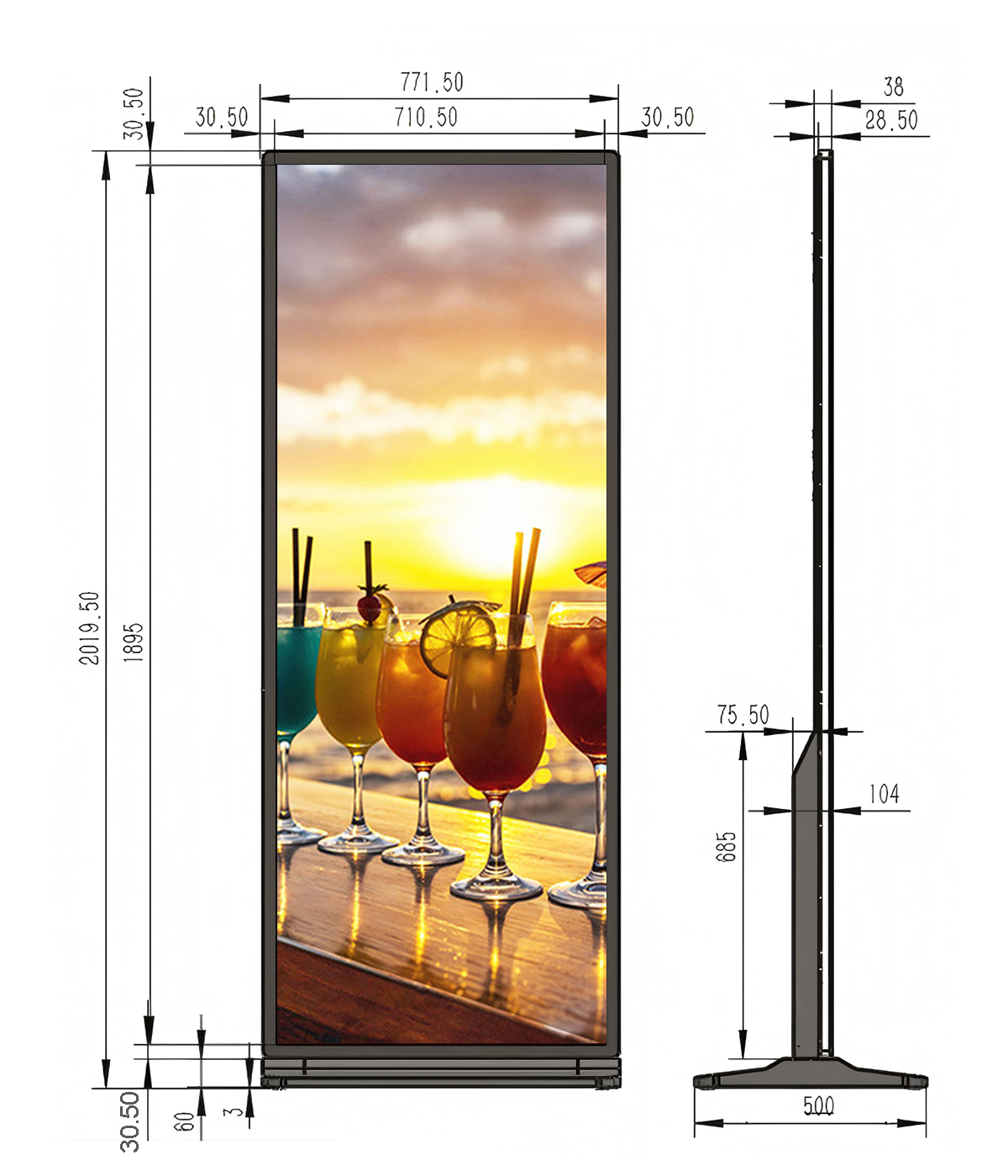 86 Inch Aluminum Portable Digital Signage Display area:1895*710mm Resolution:3840*1440 Material:Aluminum
