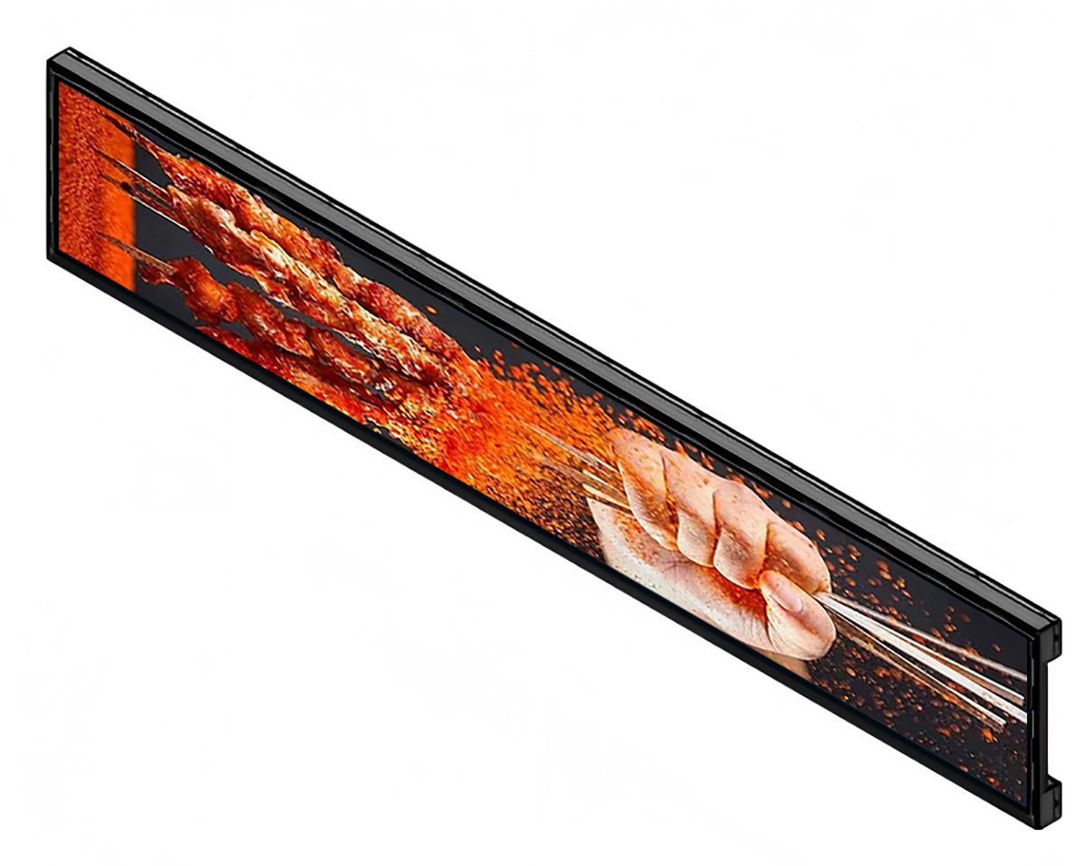 86 Inch Aluminum Stretched LCD Display Display area:2158*337mm Resolution:3840*600 Material:Aluminum、Tempered glass