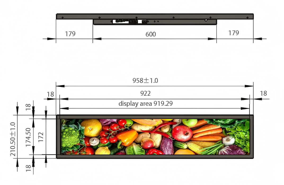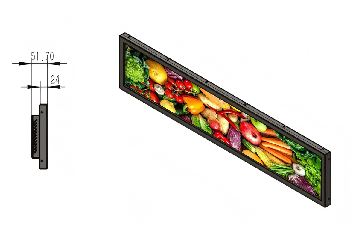 36.8 Inch Metal Stretched LCD Display Display area:919.29 *172mm Resolution:1920*360 Material:Metal