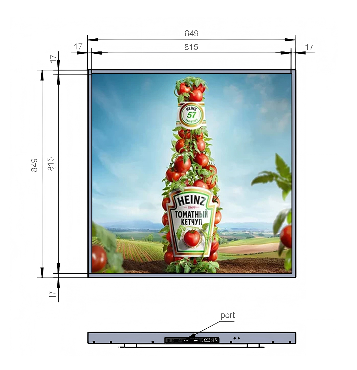 45 inch Hardware Square LCD Display Resolution:1900*1900 Display area:815*815mm Material:Hardware、Tempered glass