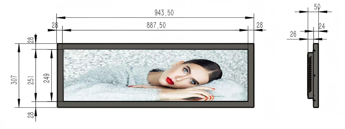 36.2 Inch Aluminum Stretched LCD Display Display area:887.5*249mm Resolution:1920*540 Material:Aluminum