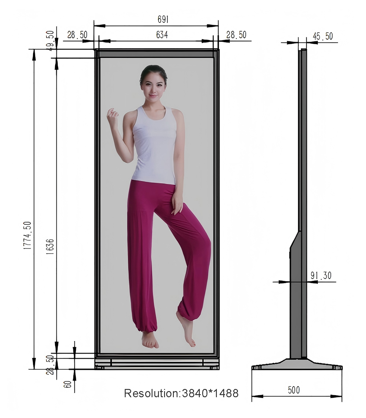 69 Inch Aluminum Portable Digital Signage Display area:1636*634mm Resolution:3840*1488 Material:Aluminum