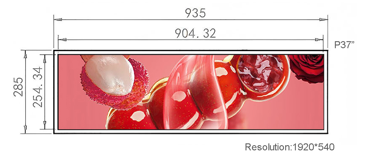 P37 Inch Metal Stretched LCD Display Display area:904.32*254.34mm Resolution:1920*540 Material:Metal
