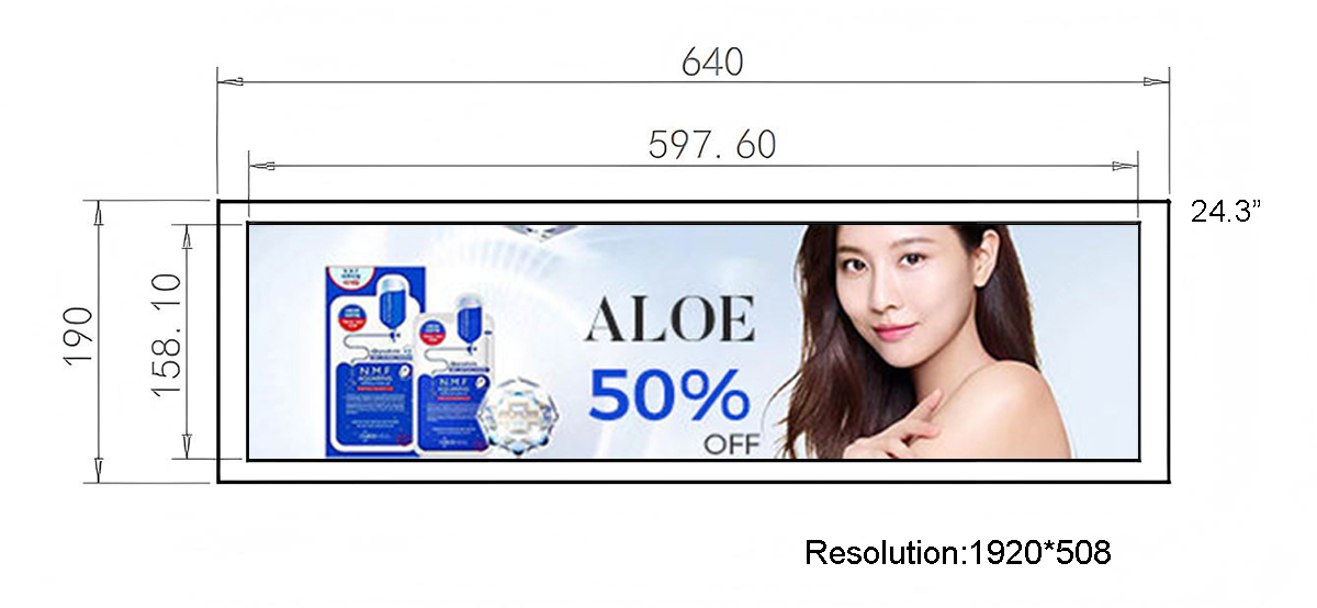 24.3 Inch C stretched lcd panel Resolution:1920*508 Display area:597.6*158.1mm Material:material