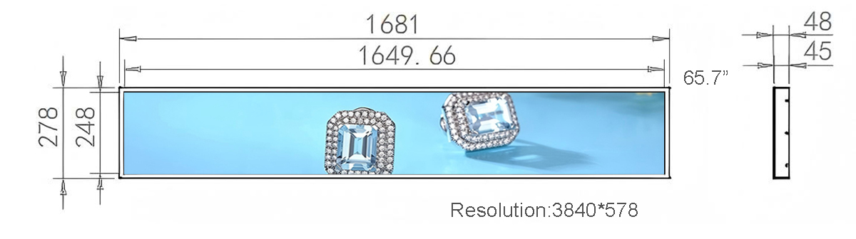 65.7 Inch Metal Stretched LCD Display Display area:1649.66*248mm Resolution:3840*578 Material:Metal